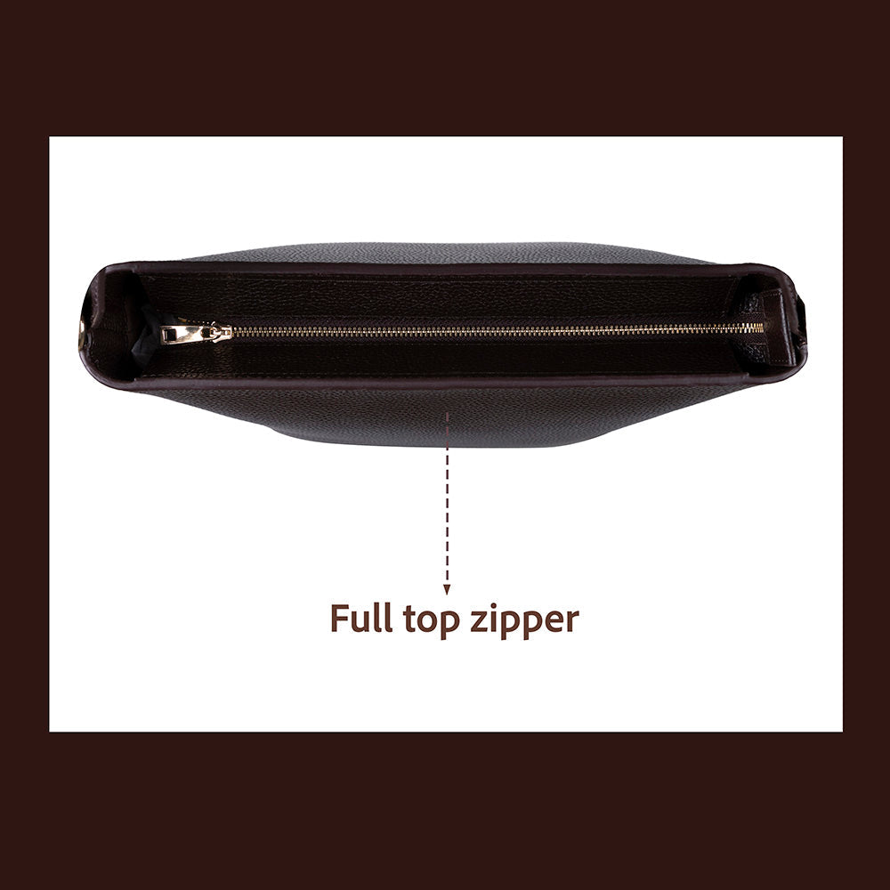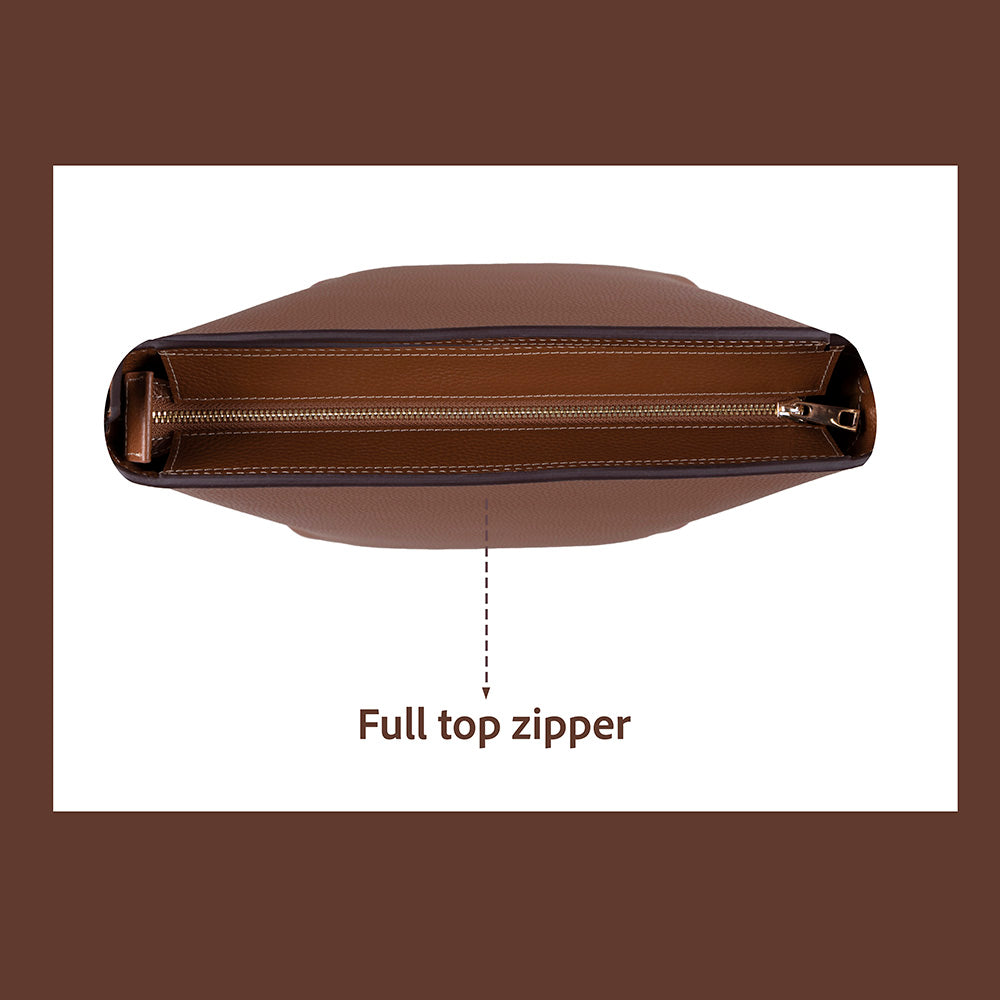Elevate your everyday style with this shoulder bag crafted from 100% genuine leather. With clean lines and a crisp silhouette, it's the ideal partner for workdays, errands, or adventures. The soft suede-textured interior lining, generous interior, and zippered closure deliver sophistication and functionality.