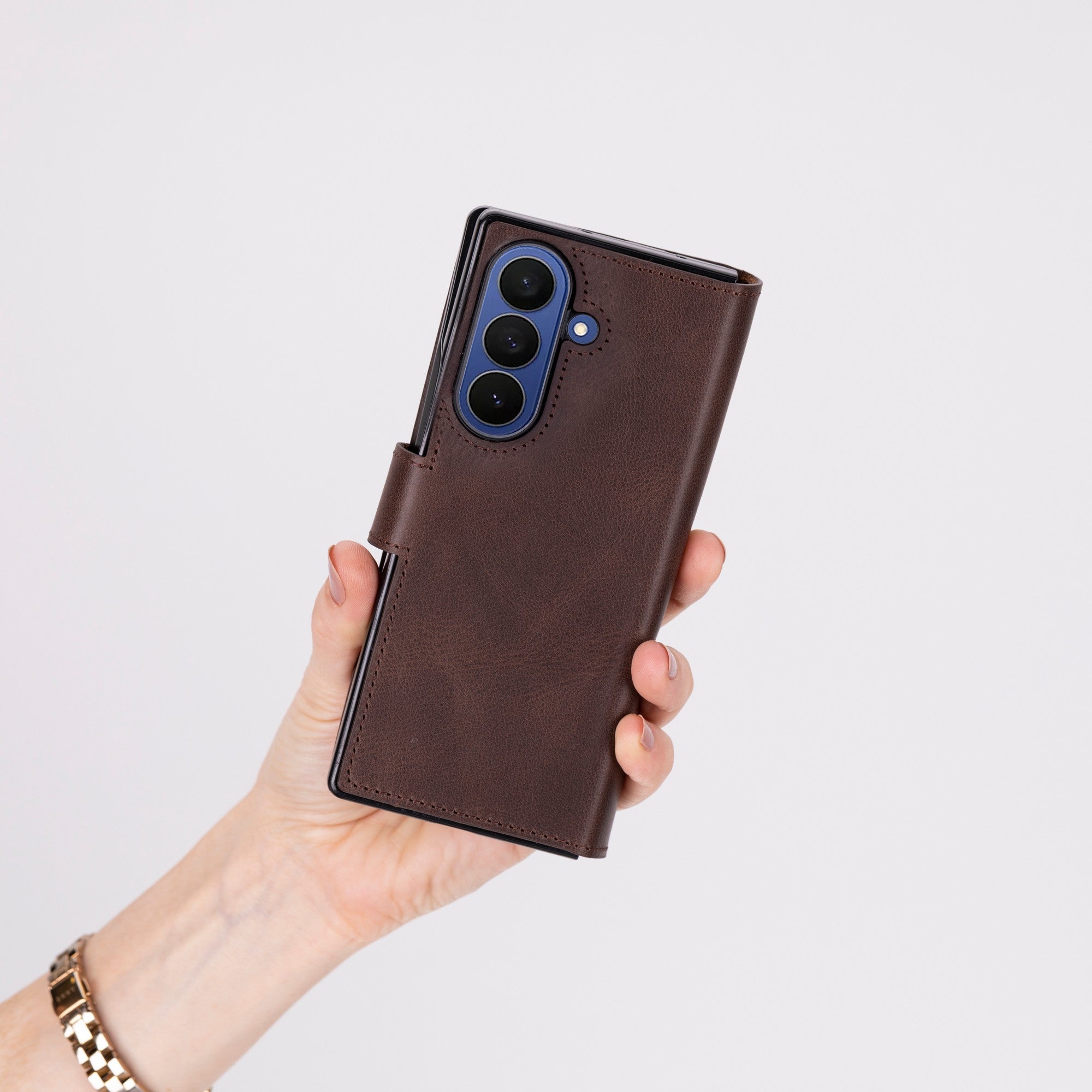This handcrafted premium leather phone case is compatible with Samsung Galaxy Z Fold 7.